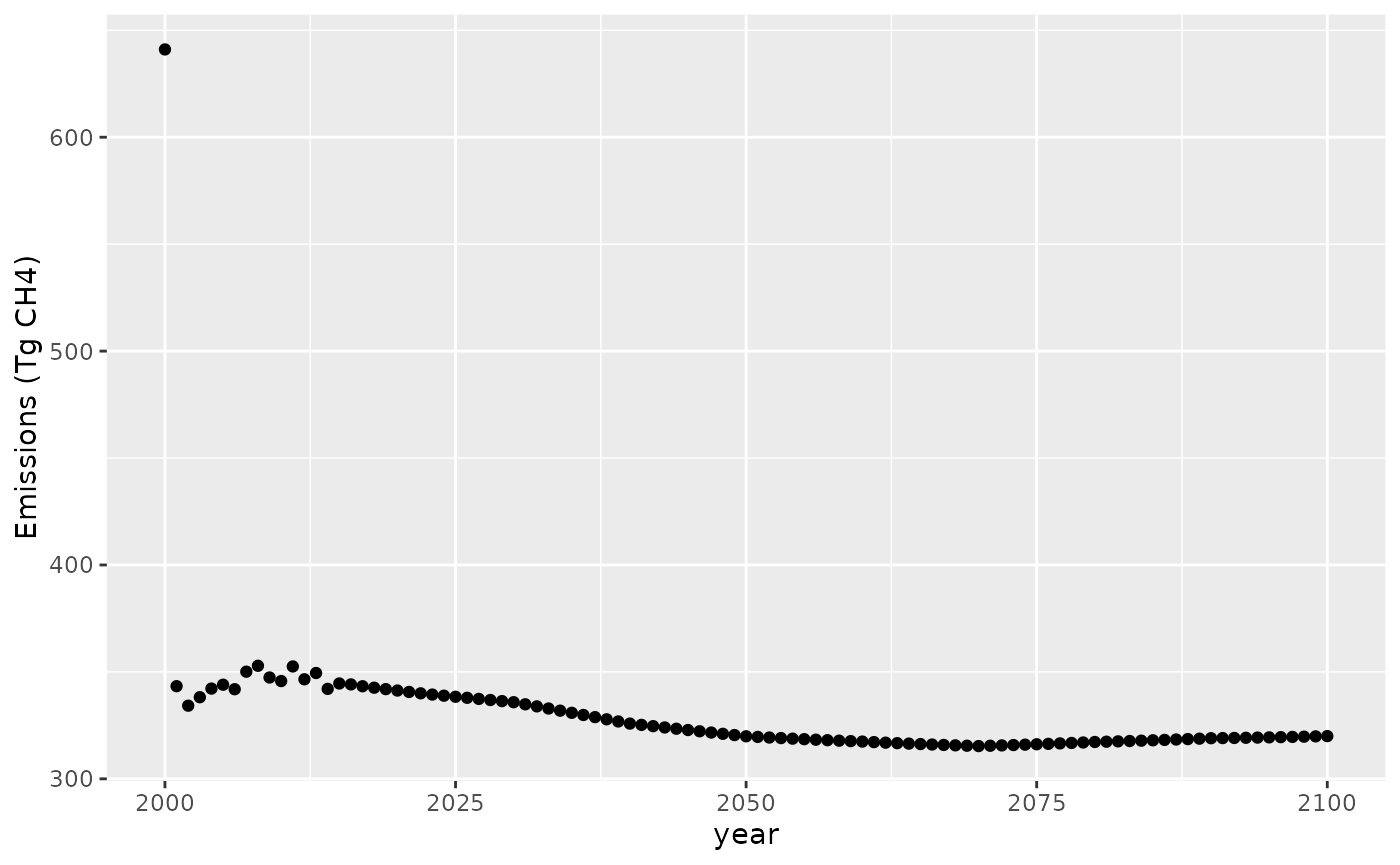 labs(x = "year", y = "Emissions (Tg CH4)")