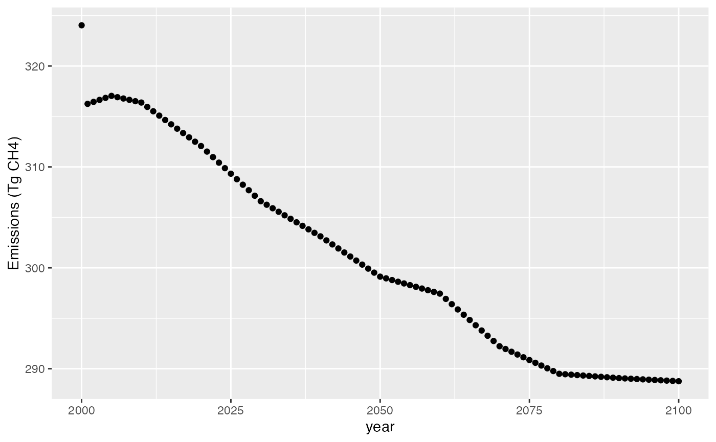 labs(y = "Emissions (Tg CH4)", x = 'year')